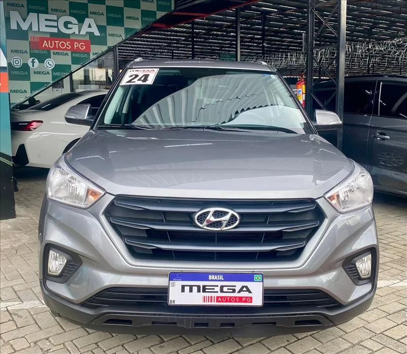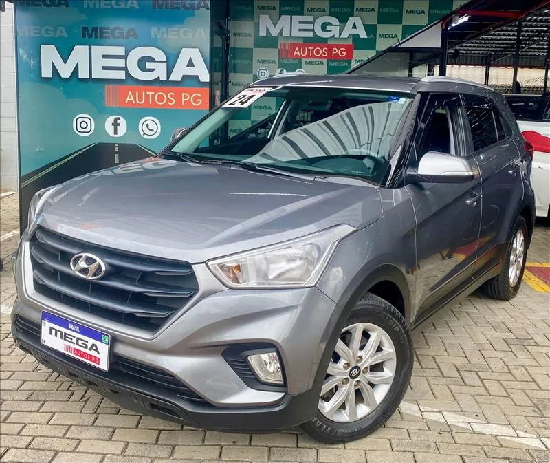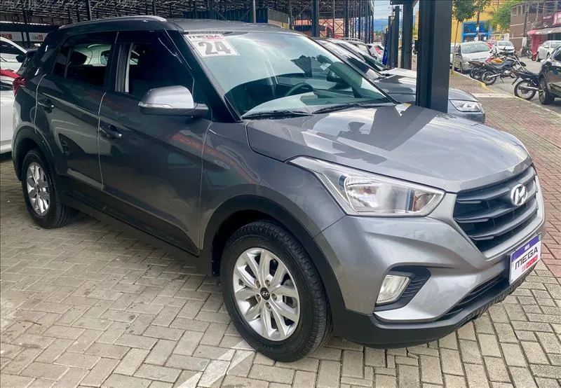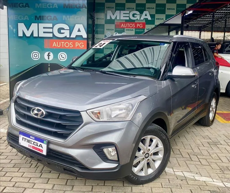 O Hyundai Creta Action 2024 é a versão de entrada, equipada com motor 1.6 aspirado (130 cv) e câmbio automático de 6 marchas. Destaca-se pelo espaço interno (431L de porta-malas), direção elétrica, 6 airbags, controles de tração/estabilidade, luzes DRL em LED, faróis de neblina e rádio com Bluetooth